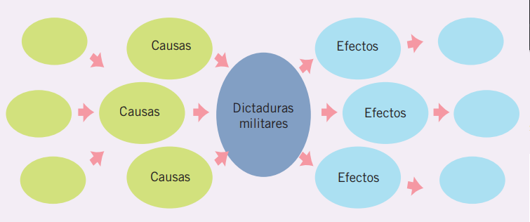1. Identifica en tu cuaderno, a través de un esquema, desarrolla las causas y efectos de las dictaduras militares en América Latina.